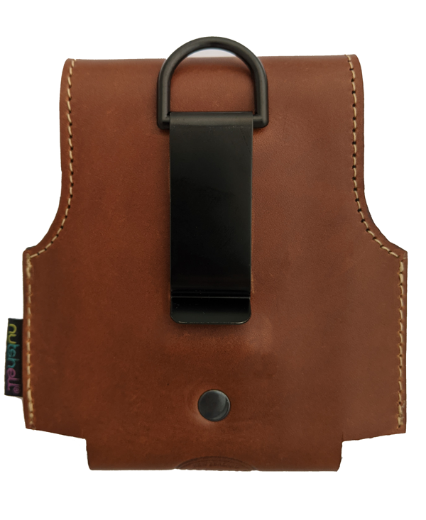 Nutshell Belt Cases are designed to allow for small differences in the sizes of smartphones and any additional cases or covers. They are like leather envelopes - push the sides together… and the width narrows as the depth i-n-c-r-e-a-s-e-s.