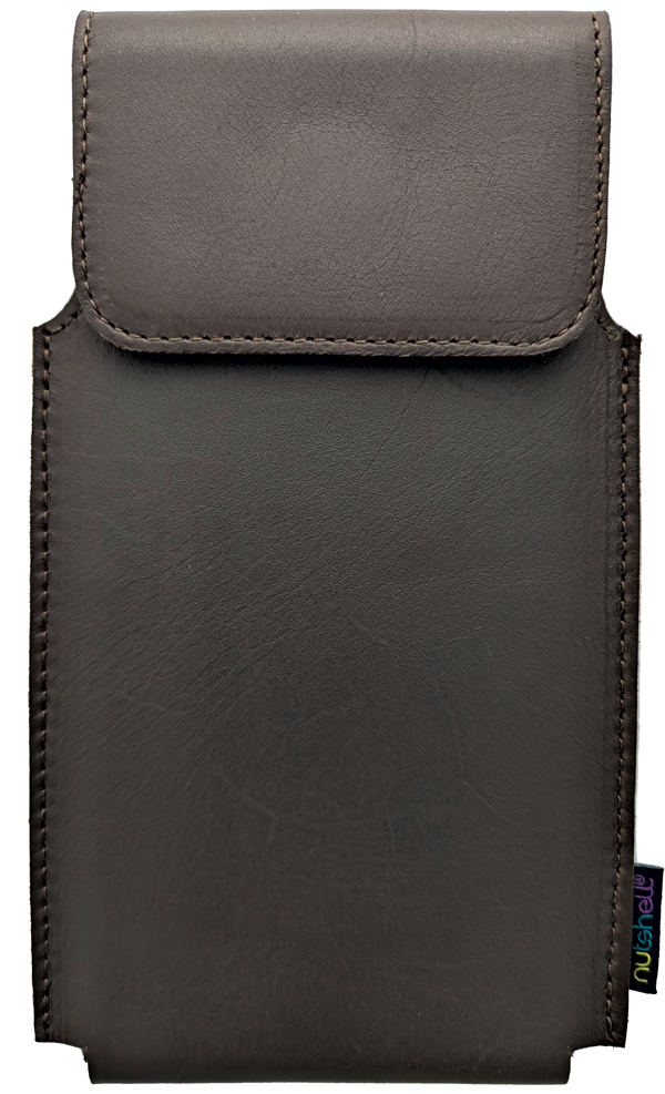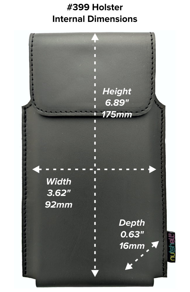 Nutshell Belt Cases are designed to allow for small differences in the sizes of smartphones and any additional cases or covers. They are like leather envelopes - push the sides together… and the width narrows as the depth i-n-c-r-e-a-s-e-s.
